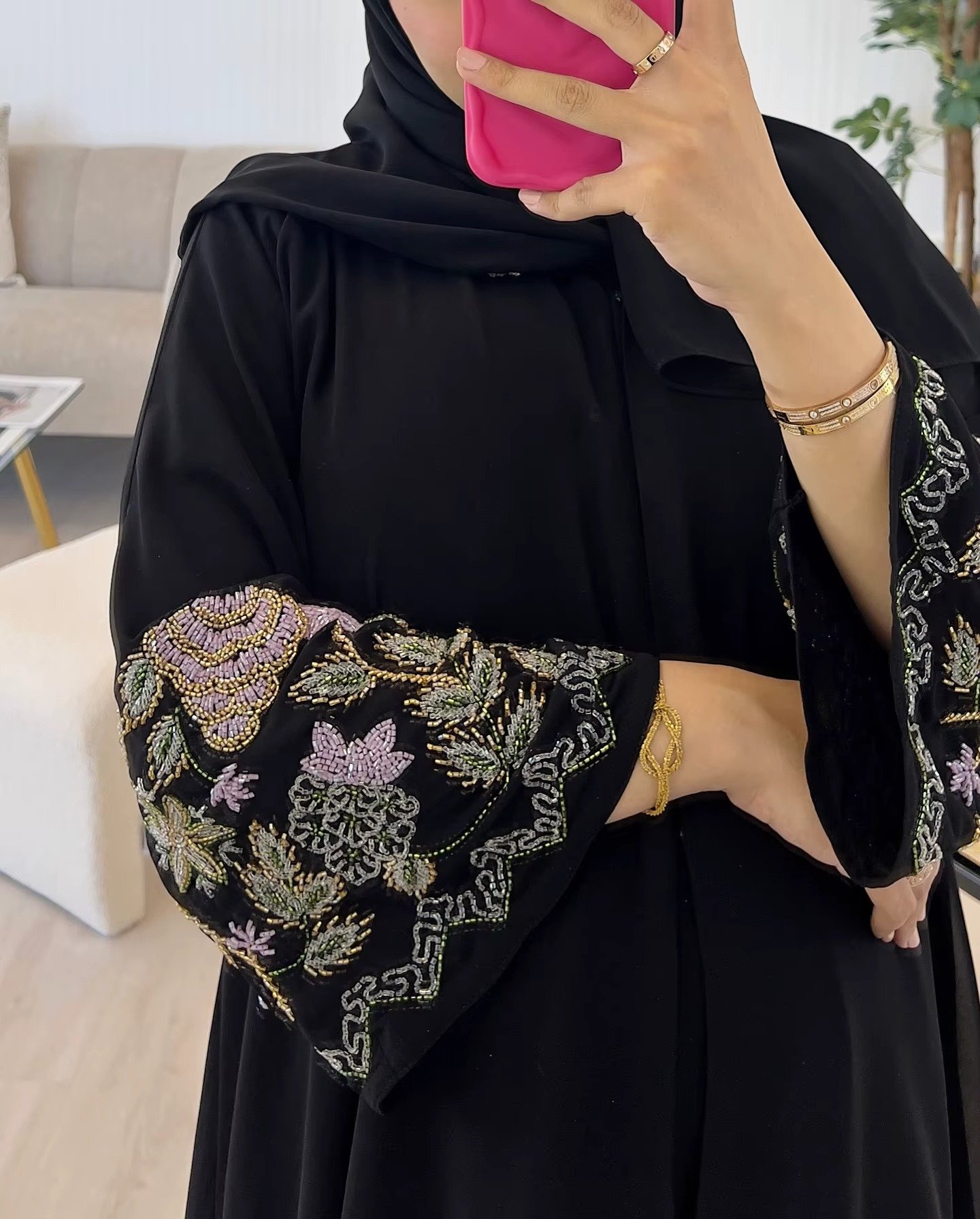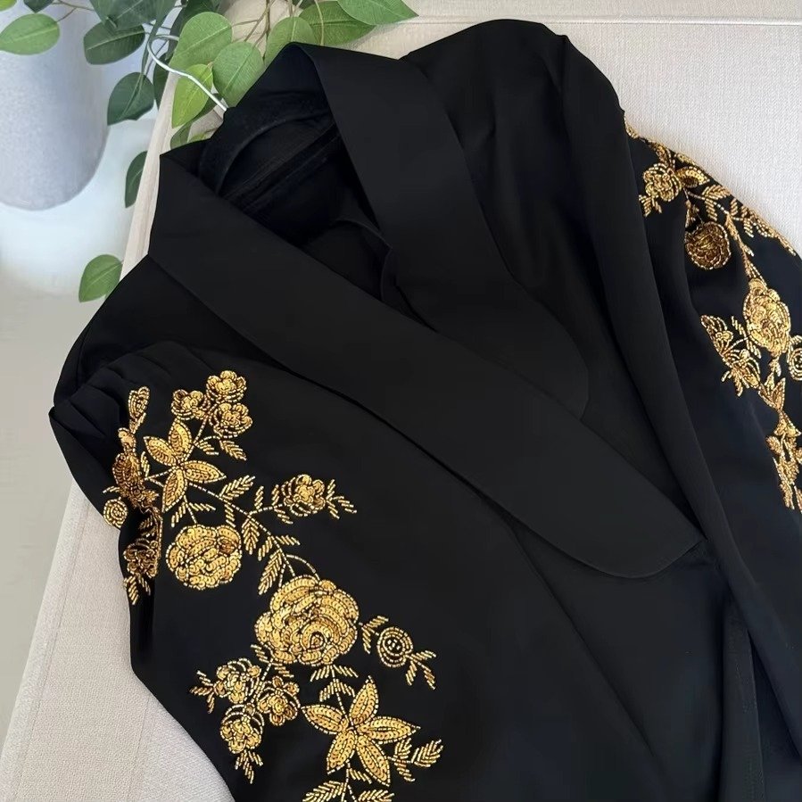 This exquisite black abaya is a testament to timeless elegance and comfort. Made from a luxurious, lightweight crepe fabric, it drapes beautifully to create a flowing, graceful silhouette. The simple yet sophisticated design features a subtle A-line cut and straight sleeves, making it a versatile piece that can be dressed up or down. Whether you’re heading to a casual outing or a formal event, this abaya is a perfect blend of modesty, style, and effortless grace.
